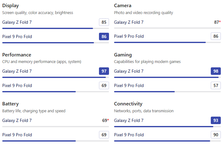 | SoC | Galaxy Z Fold 7 | Pixel 9 Pro Fold |