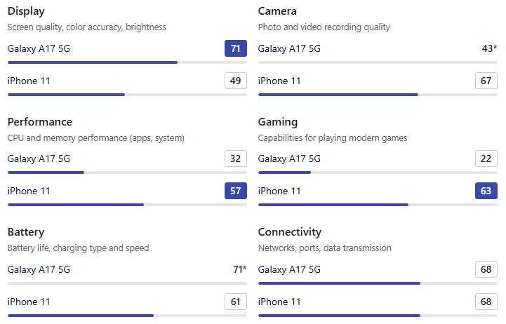 [Samsung Galaxy A17 5G vs Apple iPhone 11]