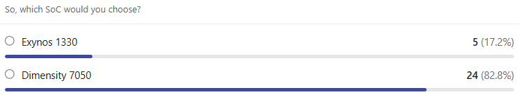 | AnTuTu 10 | Exynos 1330 | Dimensity 7050 |