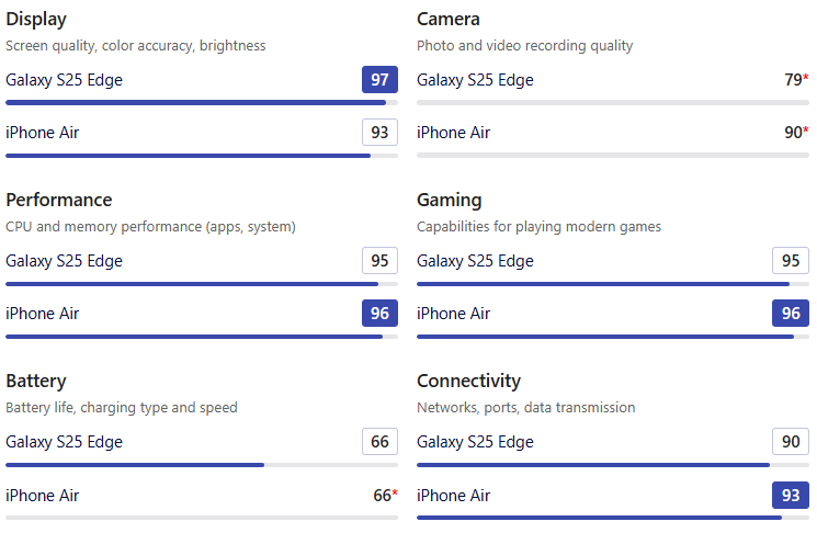• 따라서 풍경, 인물 등 다양한 후면 카메라 촬영을 즐긴다면 Galaxy S25 Edge를, 셀카를 가장 중요하게 생각한다면 iPhone Air가 각각 매력적인 선택이 될 것입니다.
