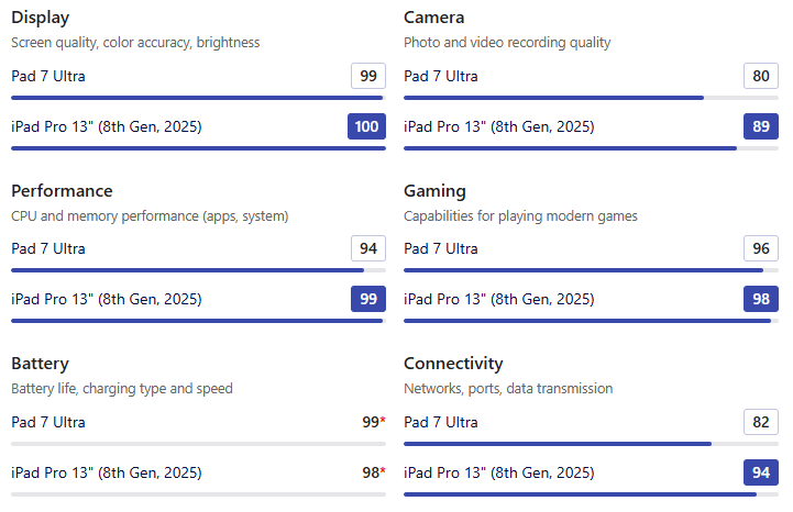 • 영상 콘텐츠 감상과 더 큰 화면을 원한다면 샤오미 패드 7 울트라가, 생산성 작업에 유리한 비율을 선호한다면 아이패드 프로 13이 더 나은 선택이 될 것입니다.