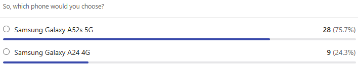 • RAM 용량이 아쉽지만, 스토리지 속도와 OS 버전에서는 Galaxy A24 4G가 근소하게 우위에 있습니다.