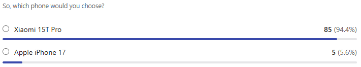• 고배율 줌과 다양한 고프레임 동영상 촬영이 중요하다면 Xiaomi 15T Pro를, 고품질 초광각 사진과 최고 수준의 셀피 촬영이 필요하다면 iPhone 17이 더 나은 선택입니다.