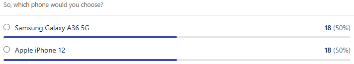 • 하지만 성능을 제외한 디스플레이 품질, 배터리 수명, 충전 속도, RAM/저장 공간, 최신 규격 지원, 편의 기능 등 거의 모든 면에서 최신 중급기인 A36 5G가 우위를 점합니다.