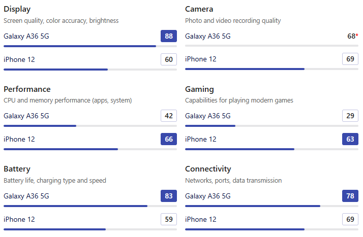 • 따라서 압도적인 배터리 용량, 더 긴 사용 시간, 훨씬 빠른 충전 속도를 원한다면 Galaxy A36 5G가 비교 불가능한 만족감을 줄 것입니다.
