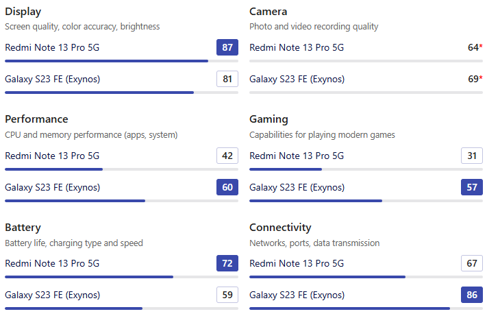 | SoC | Redmi Note 13 Pro 5G | Galaxy S23 FE |