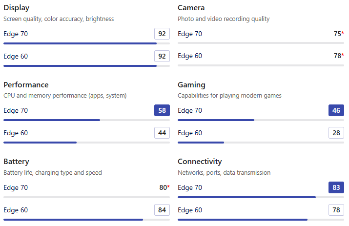 | SoC | Motorola Edge 70 | Motorola Edge 60 |