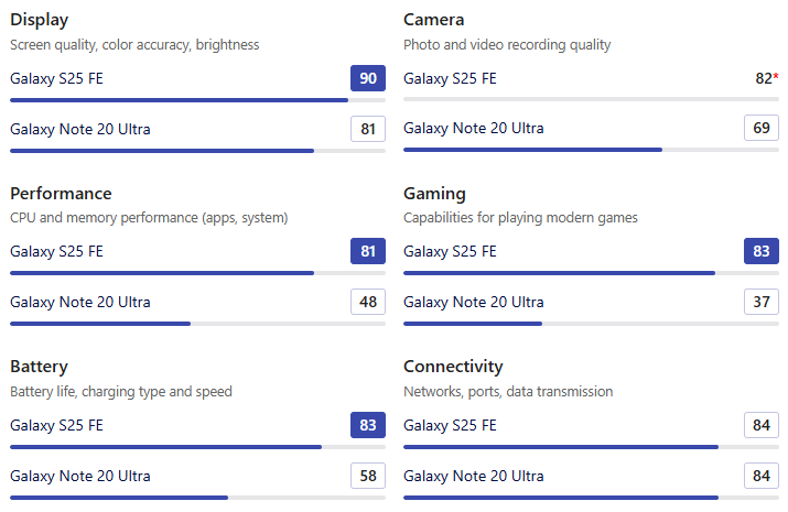 | 항목 | Galaxy S25 FE | Galaxy Note 20 Ultra |
