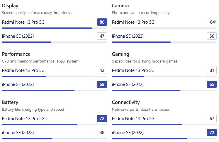 | SoC | Redmi Note 13 Pro 5G | iPhone SE (2022) |