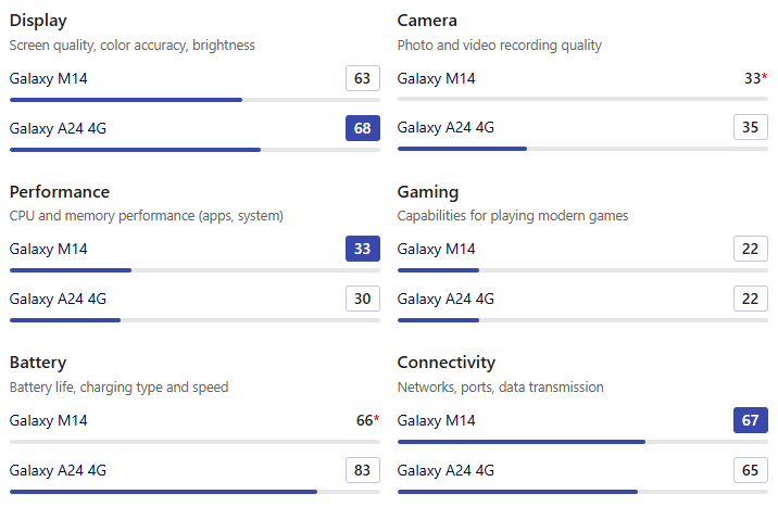| Geekbench 6 | Galaxy M14 | Galaxy A24 4G |