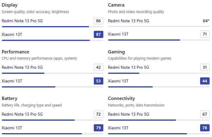 | SoC | Redmi Note 13 Pro 5G | Xiaomi 13T |
