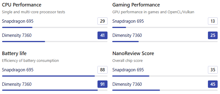 | Geekbench 6 | Snapdragon 695 | Dimensity 7360 |