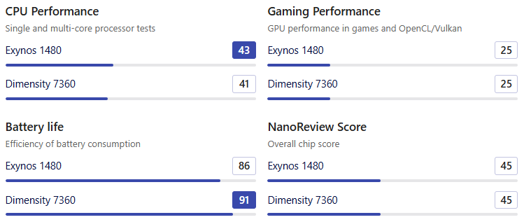 | AnTuTu 10 | Exynos 1480 | Dimensity 7360 |