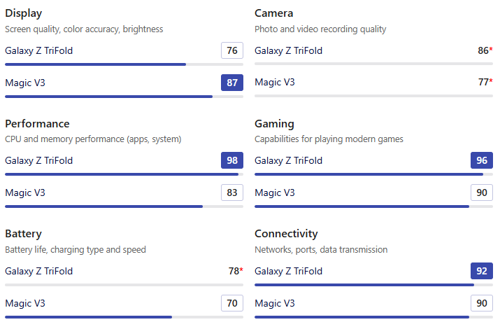 | SoC & Benchmark | Galaxy Z TriFold | Honor Magic V3 |