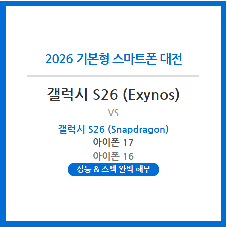 #갤럭시S26 #아이폰17 #아이폰16 #스마트폰비교 #기본형스마트폰 #엑시노스2600 #스냅드래곤8EliteGen5 #애플A19 #가벼운스마트폰 #2026신상폰