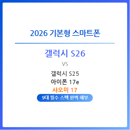 | [스펙비교]- 갤럭시 S26 vs 아이폰 17e, 아이폰 17, 샤오미 17 (1) | 2026.03.04 |