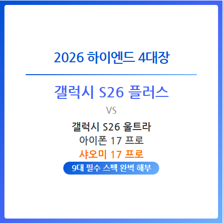 #GalaxyS26Plus #갤럭시S26플러스 #GalaxyS26Ultra #갤럭시S26울트라 #iPhone17Pro #아이폰17프로 #Xiaomi17Pro #샤오미17프로 #스마트폰비교 #플래그십스마트폰 #스마트폰추천 #핸드폰추천 #최신스마트폰 #2026신상폰 #스펙비교