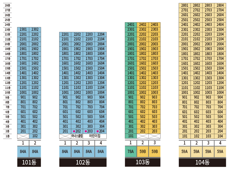 | 전용 면적(㎡) | 59, 78, 84, 125 |