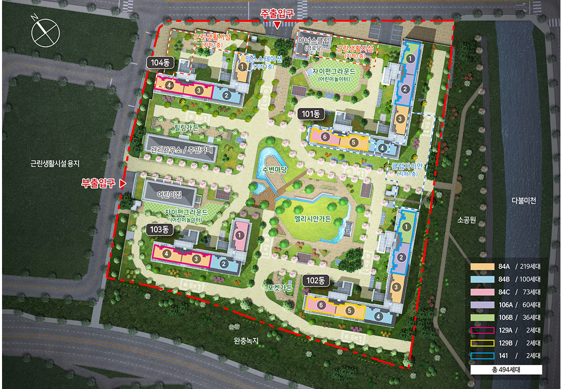 | 전용 면적(㎡) | 84, 106, 129, 141 |