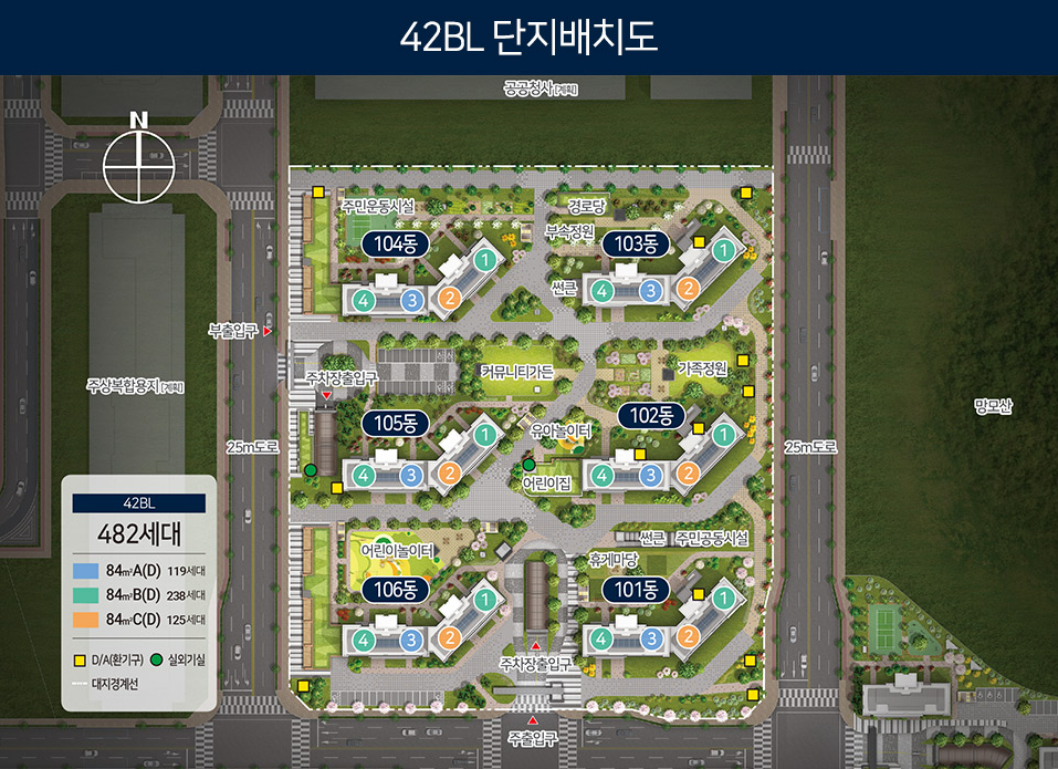 기본적으로 분양전 나오는 배치도는 소비자의 이해를 돕기 위해 만들어지는 이미지컷입니다. 그러므로 여러가지 사정으로 실제 시공되었을때와는 상이한 점이 발생할 수 있습니다. 해당 부분 숙지하시길 바랍니다.